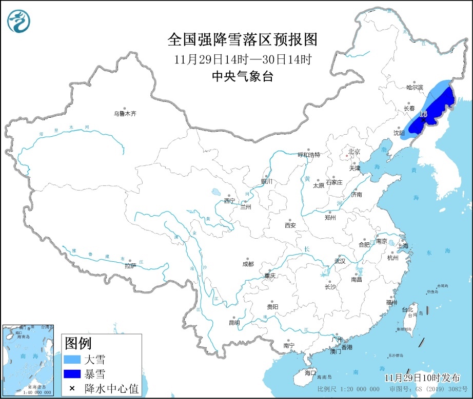 人民網(wǎng)北京11月29日電 (記者溫璐、郝孟佳)今天,中央氣象臺(tái)發(fā)布暴雪藍(lán)色預(yù)警。預(yù)計(jì)11月29日14時(shí)至30日14時(shí),遼寧東北部、吉林東部、黑龍江東南部等地有大雪,部分地區(qū)有暴雪(10~16毫米)。上述部分地區(qū)新增積雪深度5~10厘米,局地可達(dá)15厘米以上。