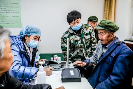 醫(yī)務(wù)人員為光榮院里的老人進(jìn)行基礎(chǔ)身體檢查