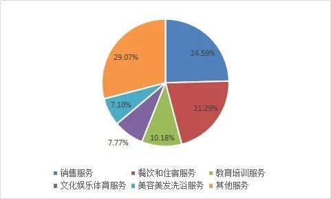 投訴量排在前五位的服務(wù)大類依次為銷售服務(wù)、餐飲和住宿服務(wù)、教育培訓服務(wù)、文化娛樂體育服務(wù)、美容美發(fā)洗浴服務(wù)。