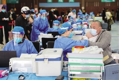 “請(qǐng)大家有序排隊(duì),間隔一米安全距離,接種過(guò)程全程佩戴好口罩,主動(dòng)出示健康碼、行程碼……”現(xiàn)場(chǎng)志愿者不斷提醒著。接種點(diǎn)設(shè)置了知情告知、登記、候種、接種、留觀等區(qū)域,還配備了消殺人員,分時(shí)間段進(jìn)行全面消殺,同時(shí),為了防止人員接種后出現(xiàn)不良反應(yīng),還配有專業(yè)醫(yī)護(hù)人員,各個(gè)環(huán)節(jié)井然有序,接種流程實(shí)行單向循環(huán)。
