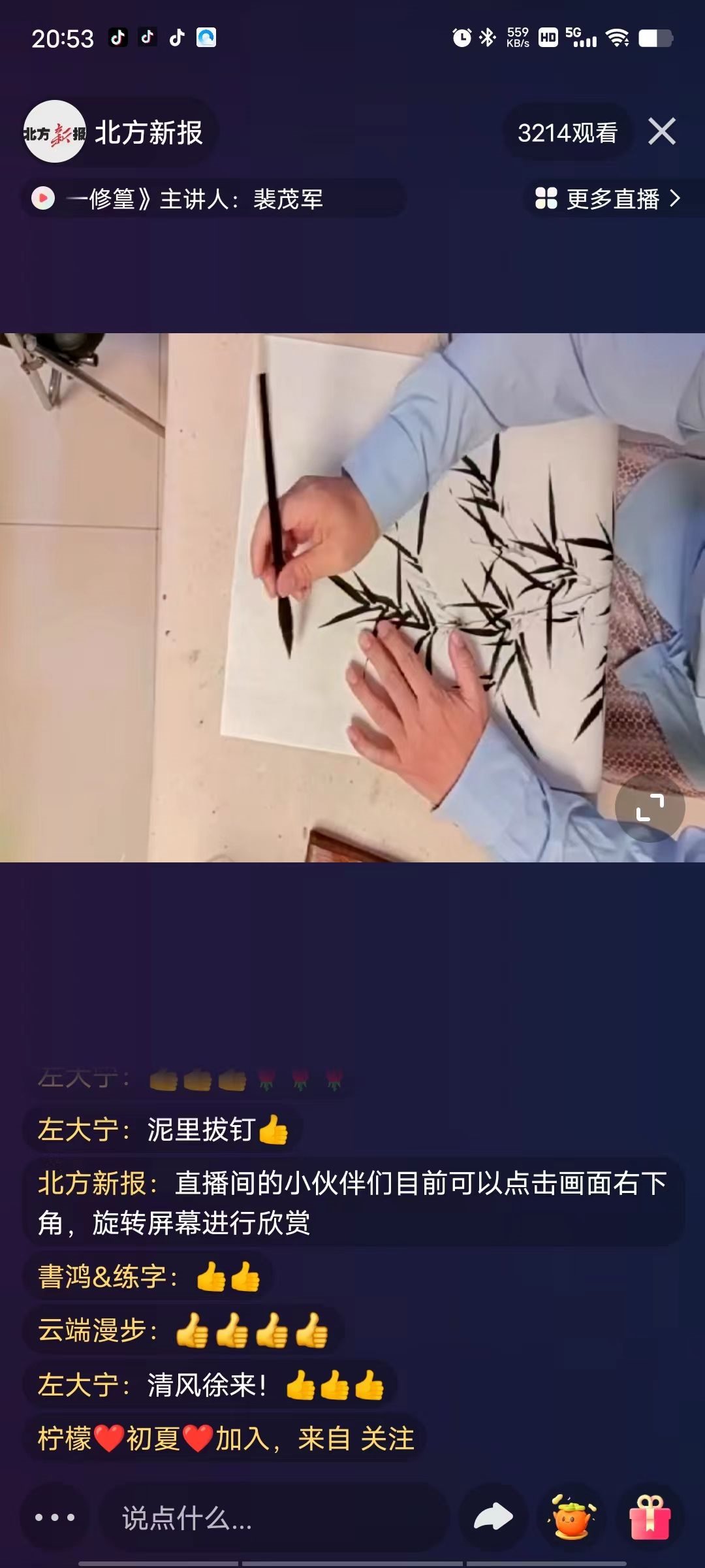 “我們這節(jié)課學(xué)習(xí)的是《明代花鳥(niǎo)畫(huà)一一修篁》……”10月13日晚,呼和浩特市書(shū)畫(huà)院花鳥(niǎo)畫(huà)講師裴茂軍線上課程開(kāi)講,給廣大美術(shù)愛(ài)好者帶來(lái)一節(jié)有趣且實(shí)用的課程,備受網(wǎng)友喜歡。
