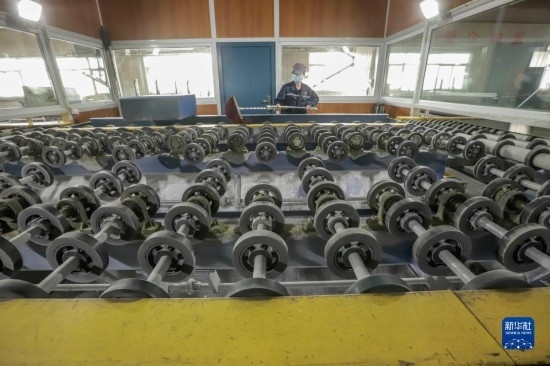 2月15日,工人在河北省唐山市遷西縣一家玻璃生產(chǎn)企業(yè)內(nèi)工作。