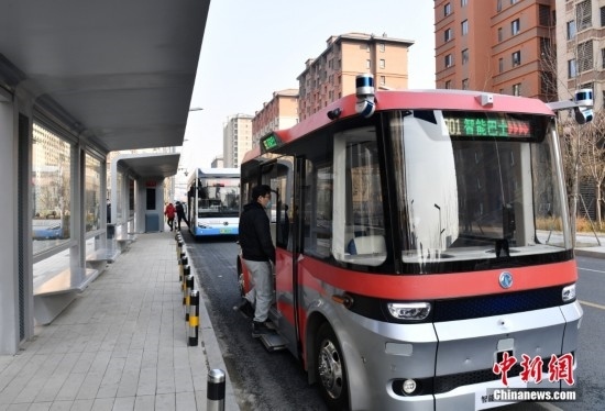 2月22日,智能網(wǎng)聯(lián)巴士901線測(cè)試車輛準(zhǔn)備發(fā)車。雄安新區(qū)的智能網(wǎng)聯(lián)巴士近期正在進(jìn)行投入運(yùn)營(yíng)前的道路測(cè)試,該巴士配備了超高感度攝像頭、超聲波雷達(dá)、激光雷達(dá)、毫米波雷達(dá)等感知設(shè)備,組成了車輛的“眼睛”。車輛可自主識(shí)別紅綠燈、道路提示牌和車道標(biāo)線等,做出跟車、超車、停車等動(dòng)作。中新社記者 韓冰 攝