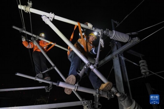 每日0至4時,中國鐵路上海局集團有限公司上海高鐵基礎設施段的綜合維修工們都要在滬寧城際高鐵沿線對接觸網(wǎng)設備進行全面“體檢”,守護高鐵運行安全。綜合維修工的日常工作包括接觸網(wǎng)絕緣子清掃、吊弦更換、隔離開關檢修等。