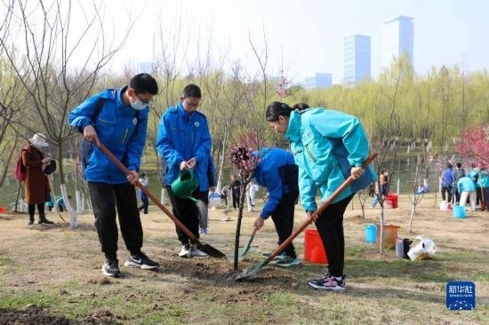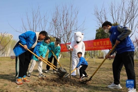 當(dāng)日,合肥市包河區(qū)濱湖世紀(jì)社區(qū)聯(lián)合轄區(qū)消防工作人員在雨水公園開展“手牽手護(hù)綠一起行”義務(wù)植樹活動(dòng),綠化家園。