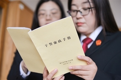 走進(jìn)煙臺中院,每一名干警手中都有一本廉潔手冊,里面有防止干預(yù)司法“三個規(guī)定”和新時代政法干警“十個嚴(yán)禁”等內(nèi)容。