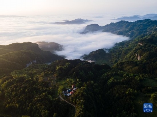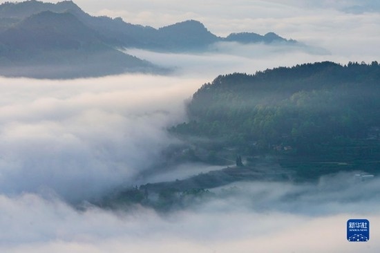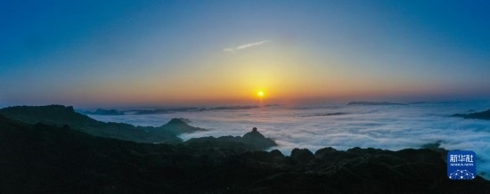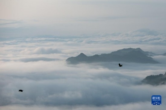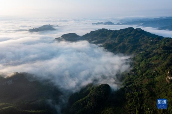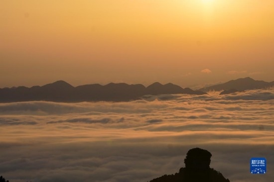 當日,位于重慶市南川區(qū)的世界自然遺產(chǎn)地金佛山雨后放晴,山間升騰起的水汽匯聚成云海在山巒之間流淌,美不勝收。