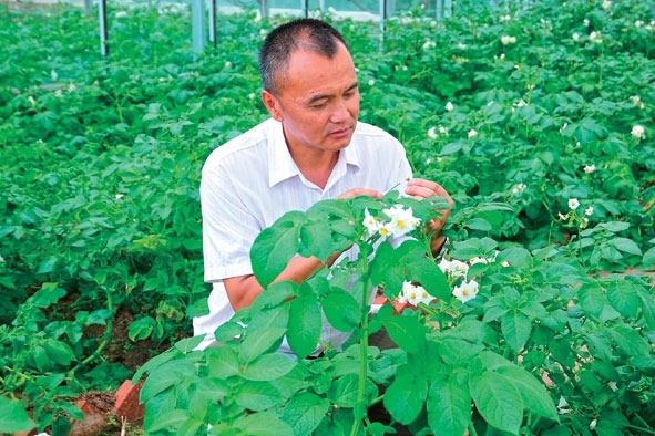 在青藏高原工作近40年,年近六旬的王艦帶領(lǐng)團(tuán)隊(duì)培育的“青薯”系列馬鈴薯品種得到大面積推廣。這些耐旱高產(chǎn)品種,抗病性強(qiáng),據(jù)統(tǒng)計(jì)可使每畝增產(chǎn)25%至50%,增收300元到400元,成為農(nóng)民脫貧致富的“金豆豆”。