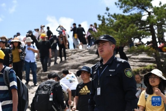 4月20日,秦志平在黃山風(fēng)景區(qū)光明頂附近進(jìn)行路段巡查。
