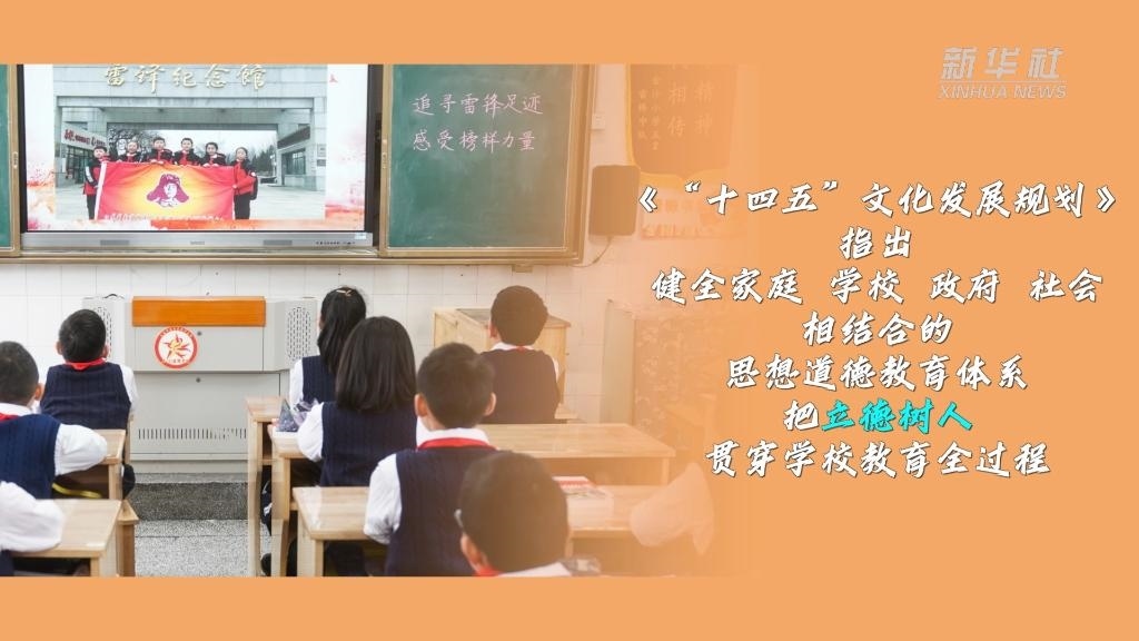 《“十四五”文化發(fā)展規(guī)劃》指出,健全家庭、學校、政府、社會相結(jié)合的思想道德教育體系,把立德樹人貫穿學校教育全過程。