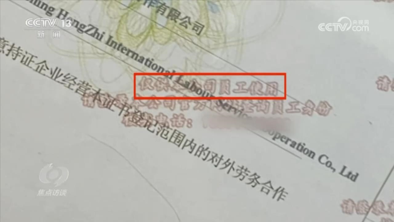 在辦公室擺放的證件是一家名為遼寧恒志國(guó)際勞務(wù)合作有限公司的對(duì)外勞務(wù)合作經(jīng)營(yíng)資格證。為了防止別人冒用自己的資質(zhì),在證件上明確寫著“僅供本公司員工使用”,還印上了公司的核實(shí)電話。按照這個(gè)號(hào)碼,記者聯(lián)系了遼寧恒志國(guó)際勞務(wù)合作有限公司,公司負(fù)責(zé)人卻表示不認(rèn)識(shí)眾國(guó)國(guó)際。