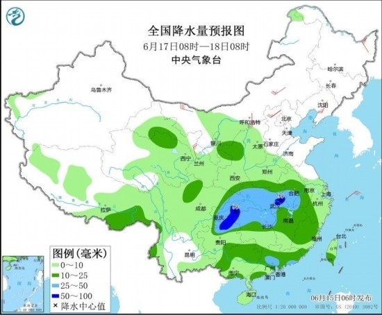 全國降水量預(yù)報圖(6月17日08時-18日08時)圖自中央氣象臺網(wǎng)站