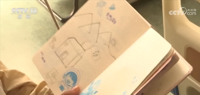 住院的時候,貢桑把對家鄉(xiāng)的思念融入了這幅畫中,遠處的小房子是她的家,房子上掛著五星紅旗,她的妹妹和家人都是她心里最深的牽掛。