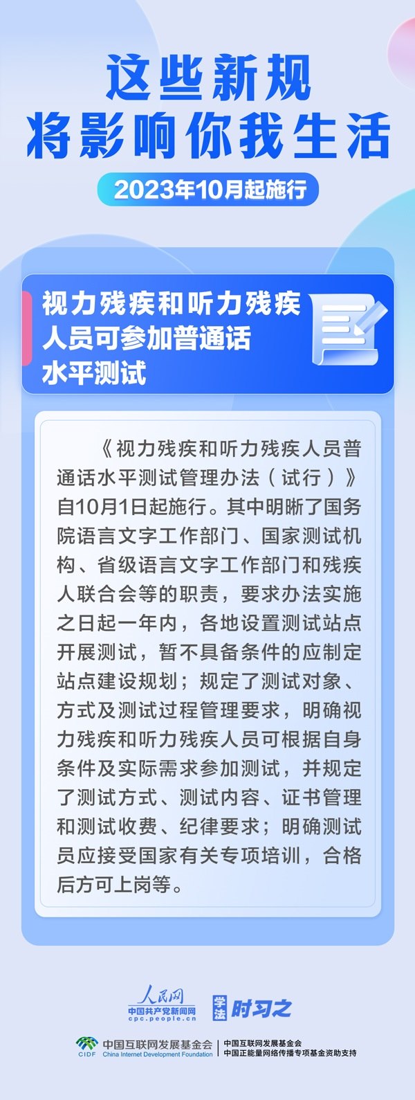 預(yù)防和制止假冒國(guó)企央企等違法行為;加強(qiáng)校外培訓(xùn)監(jiān)管;視力殘疾和聽(tīng)力殘疾人員可參加普通話水平測(cè)試……10月,這些新規(guī)施行,將影響你我生活。