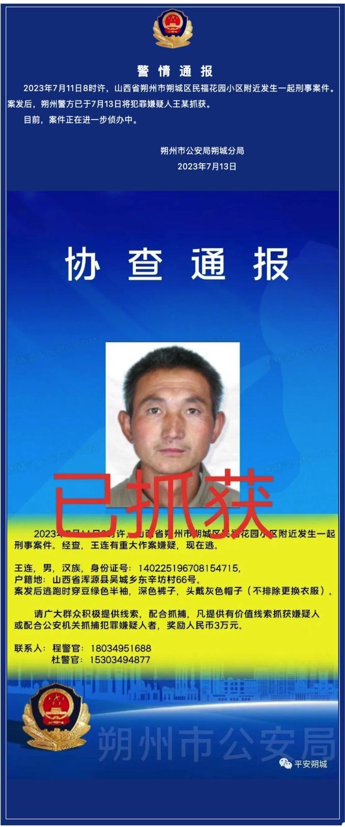 ·山西朔城警方通報:殺害隊長的環(huán)衛(wèi)工已被捕。