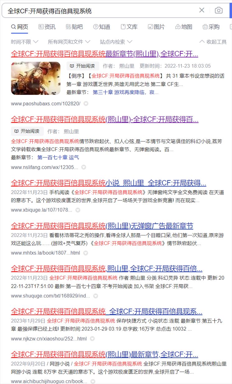 記者查詢發(fā)現(xiàn),除了擅自“續(xù)寫”之外,網(wǎng)絡(luò)文學(xué)被盜版網(wǎng)站通過(guò)技術(shù)手段“爬取”的現(xiàn)象十分常見。以作品名為關(guān)鍵詞搜索,只有前幾條能導(dǎo)向正版網(wǎng)站,其余都是盜版,原創(chuàng)作者維權(quán)困難。