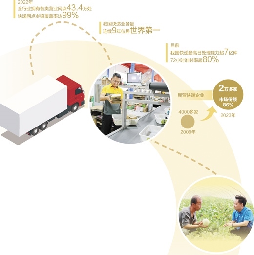 加入快遞網(wǎng)點(diǎn)后,賀英售賣的水果當(dāng)天就能發(fā)貨,3天以內(nèi)就能送達(dá)?!鞍芽爝f網(wǎng)建起來,才能讓電商更好地融入鄉(xiāng)村?!毙旆逭f。