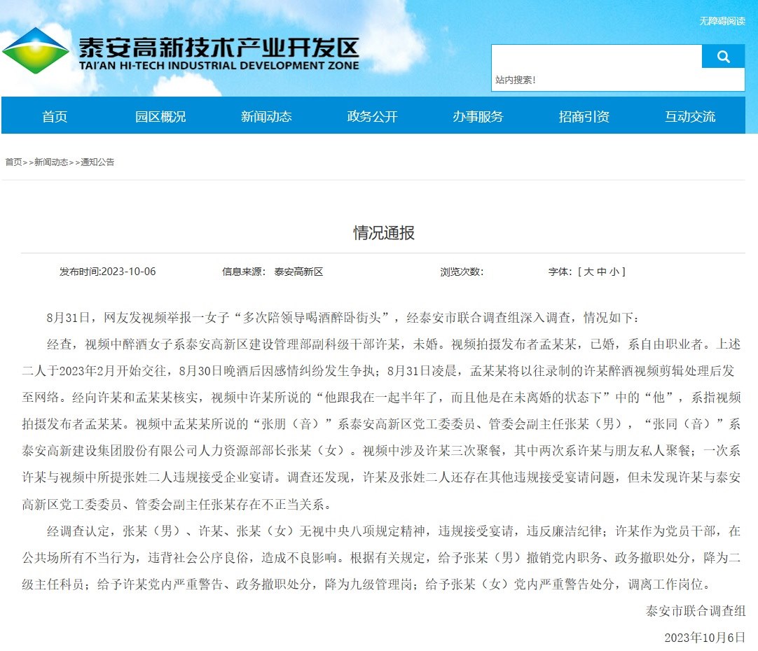 ·泰安通報“網(wǎng)傳女子陪領(lǐng)導(dǎo)喝酒醉臥街頭”:3人違規(guī)接受宴請被處分。
