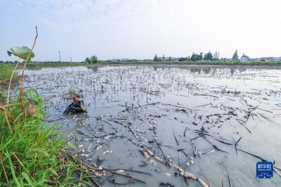 10月12日,東林鎮(zhèn)星火村的種植戶在采收蓮藕。
