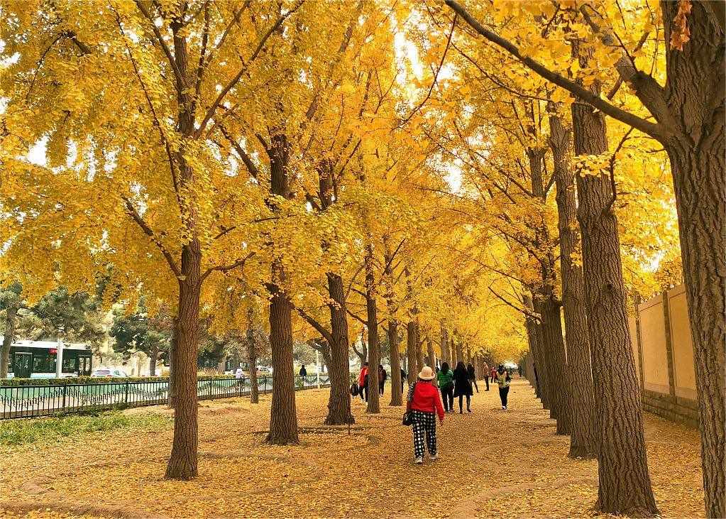 北京釣魚臺(tái)銀杏大道一片金黃,進(jìn)入最佳觀賞期,吸引市民前來(lái)打卡游玩拍照。