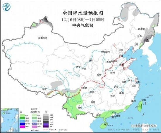 全國降水量預(yù)報(bào)圖(12月6日08時(shí)-7日08時(shí))