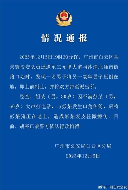 ·廣東街頭一男子當街騎坐在老人身上,并大喊讓其跪下,警方通報:已被行政拘留。
