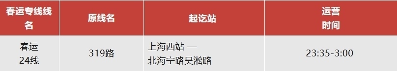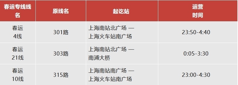 注:上海火車站春運專線運營日期為2月14日至3月5日。
