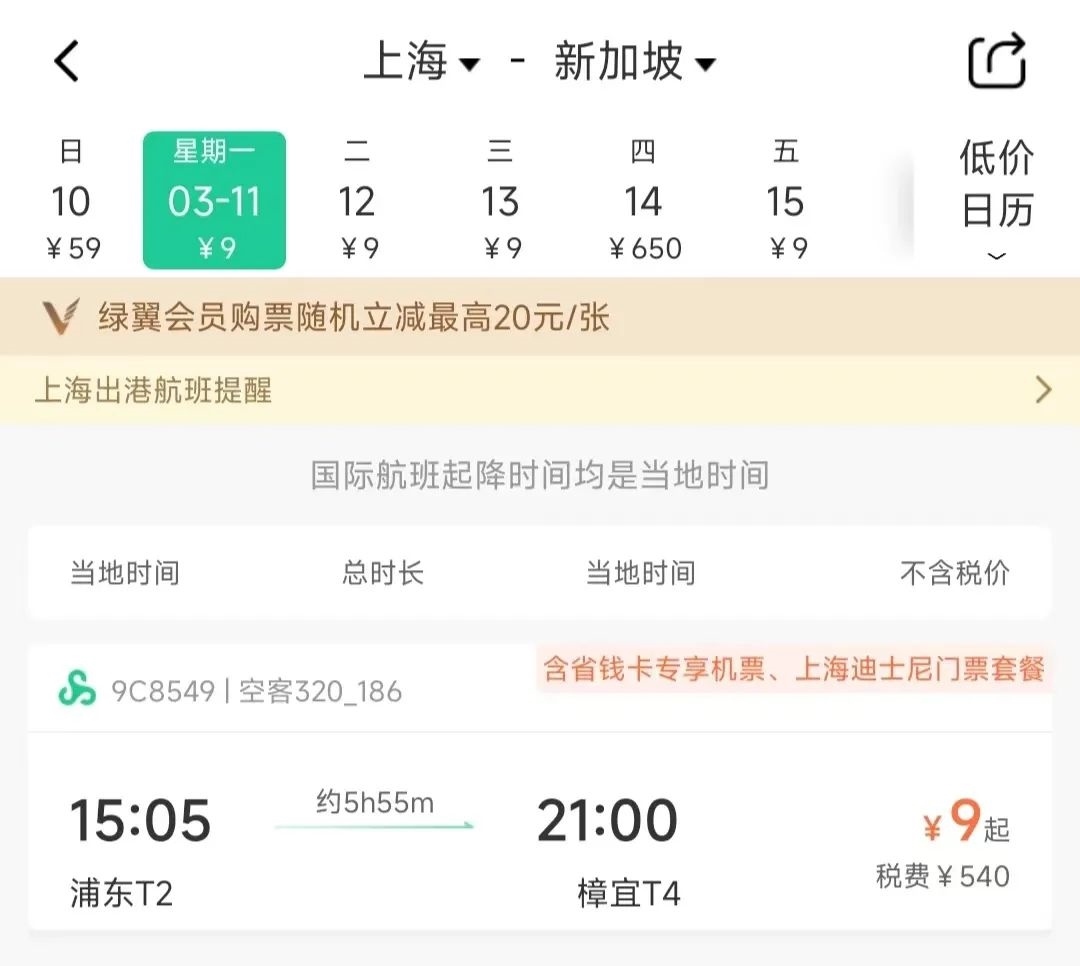 值得注意的是,這張截圖來(lái)自某訂票平臺(tái),如果查看春秋航空官網(wǎng)或者APP,并沒(méi)有不含稅0元的票價(jià),而是最低9元(不含稅)。