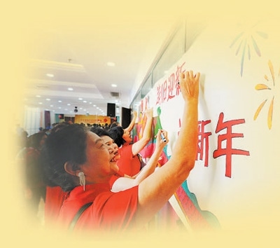 盛康園社區(qū)居民舉行迎新春聯(lián)歡會(huì),居民在畫(huà)布上寫(xiě)下新春心愿。本報(bào)記者 李家鼎攝