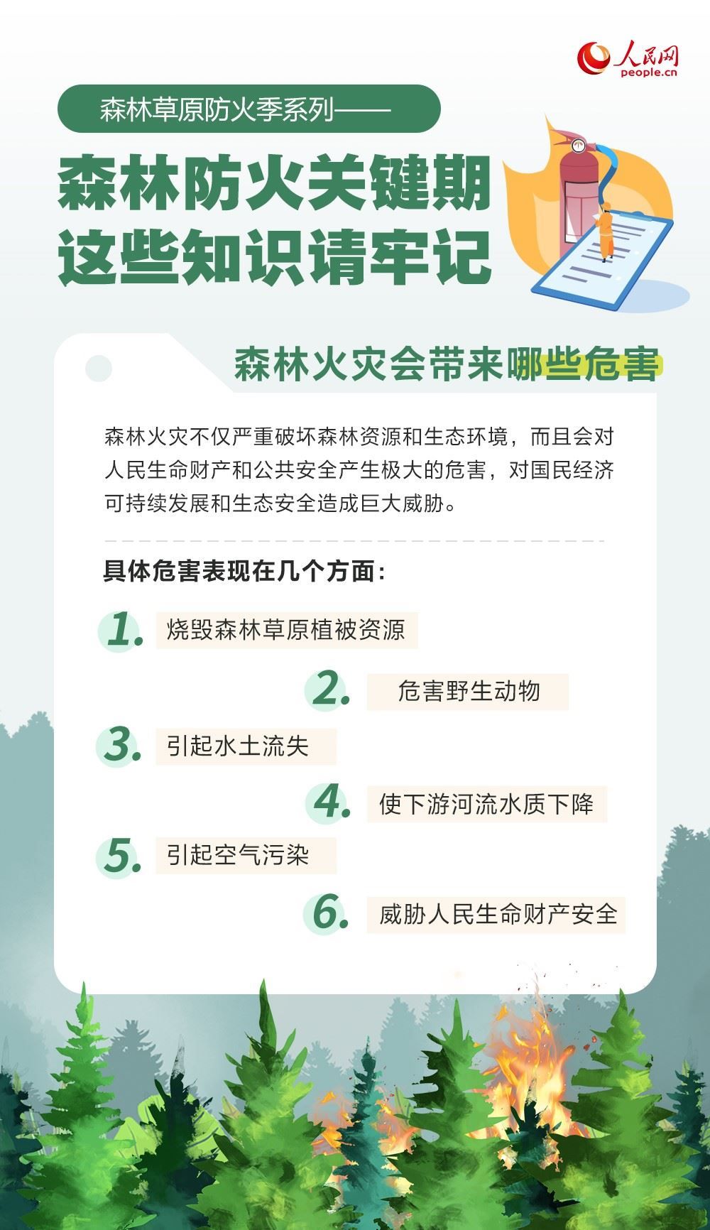 春季氣溫回升,風(fēng)干物燥,是森林草原火災(zāi)的高發(fā)期。森林火災(zāi)會(huì)帶來(lái)哪些危害? 如何防范森林火災(zāi)?一起來(lái)了解。