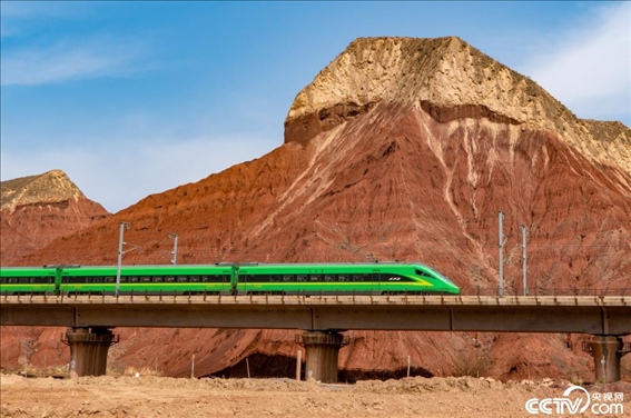 動(dòng)車組列車疾馳在蘭新高鐵上,與錦繡山河構(gòu)成了一幅幅優(yōu)美的動(dòng)態(tài)畫(huà)卷。