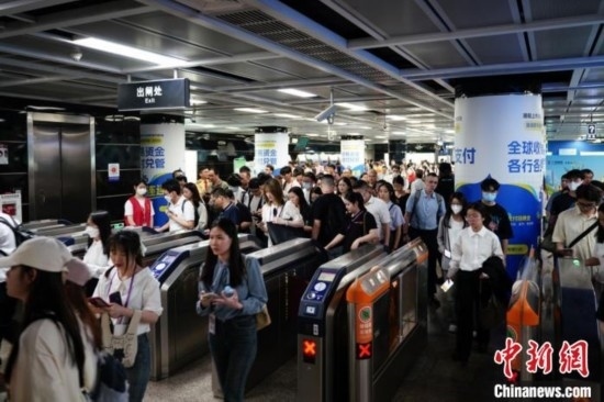 “五一”假期5天間,廣州地鐵總運客約4500萬人次。圖為出入地鐵站的人潮。廣州地鐵集團供圖