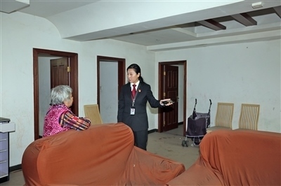 黃麗芳做拍賣房屋內居住人員思想工作。 羅志航 攝