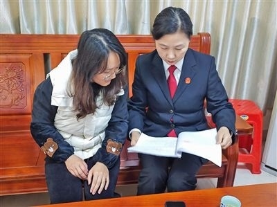 黃麗芳正在指導當事人辦理執(zhí)行手續(xù)。 徐志毅 攝