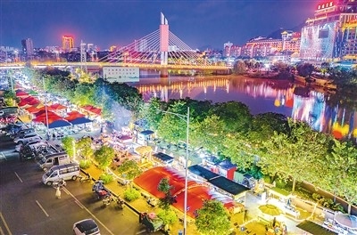 近年來,廣西壯族自治區(qū)賀州市不斷豐富夜間經(jīng)濟(jì)消費(fèi)業(yè)態(tài),滿足市民多樣化消費(fèi)需求,助推城市經(jīng)濟(jì)煥發(fā)新活力。圖為近日,市民和游客在賀州市城區(qū)江南中路夜市休閑游玩。黎豪圖攝(人民視覺)