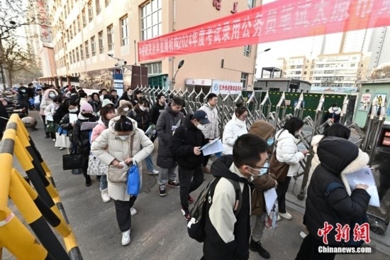 2023年11月26日,山西省太原市,考生步入考場。當日,中央機關(guān)及其直屬機構(gòu)2024年度考試錄用公務(wù)員公共科目筆試開考。中新社記者 韋亮 攝