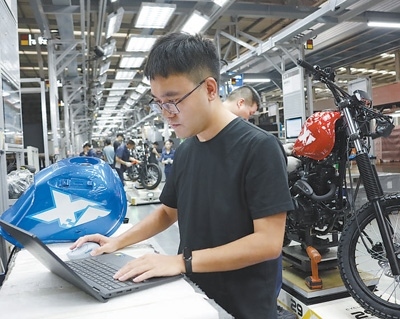 “哪個(gè)環(huán)節(jié)的裝配參數(shù)和給定值不吻合,系統(tǒng)就會(huì)自動(dòng)報(bào)警,不再需要人工巡檢,效率得到大幅提升?!标悋?guó)靖說(shuō),得益于數(shù)智化生產(chǎn)線,每150秒就有一輛摩托車(chē)下線。
