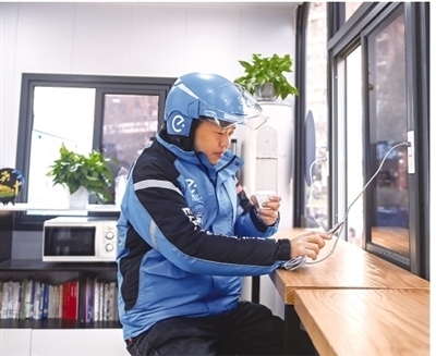 “一張床位每個(gè)月僅600多元,是市場(chǎng)價(jià)的1/3?!毙埵呛幽先耍诤贾輳氖驴爝f行業(yè)已有7年,如今他不僅住進(jìn)了廉價(jià)且環(huán)境優(yōu)美的公寓,工作之余還能在公寓內(nèi)的“尚小驛”服務(wù)站點(diǎn)歇腳休息,在“小哥食堂”就餐。