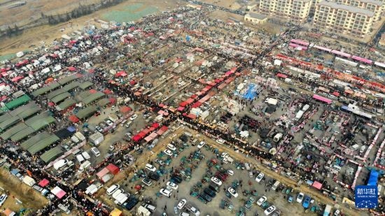 這是位于青島西海岸新區(qū)的泊里大集現(xiàn)場(chǎng)(1月18日攝,無(wú)人機(jī)照片)。