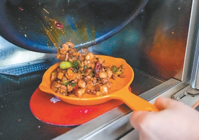 劉楊現(xiàn)場(chǎng)下單了一份干燒雙菇,炒好后,打開柜門的那一刻,香氣撲面而來(lái)。“肯定比我自己做的好吃,比一些餐廳的味道也好。”劉楊說(shuō):“如果家中來(lái)客,炒3個(gè)菜帶回家,總共也就幾十元,比下館子劃算得多?!?/p>