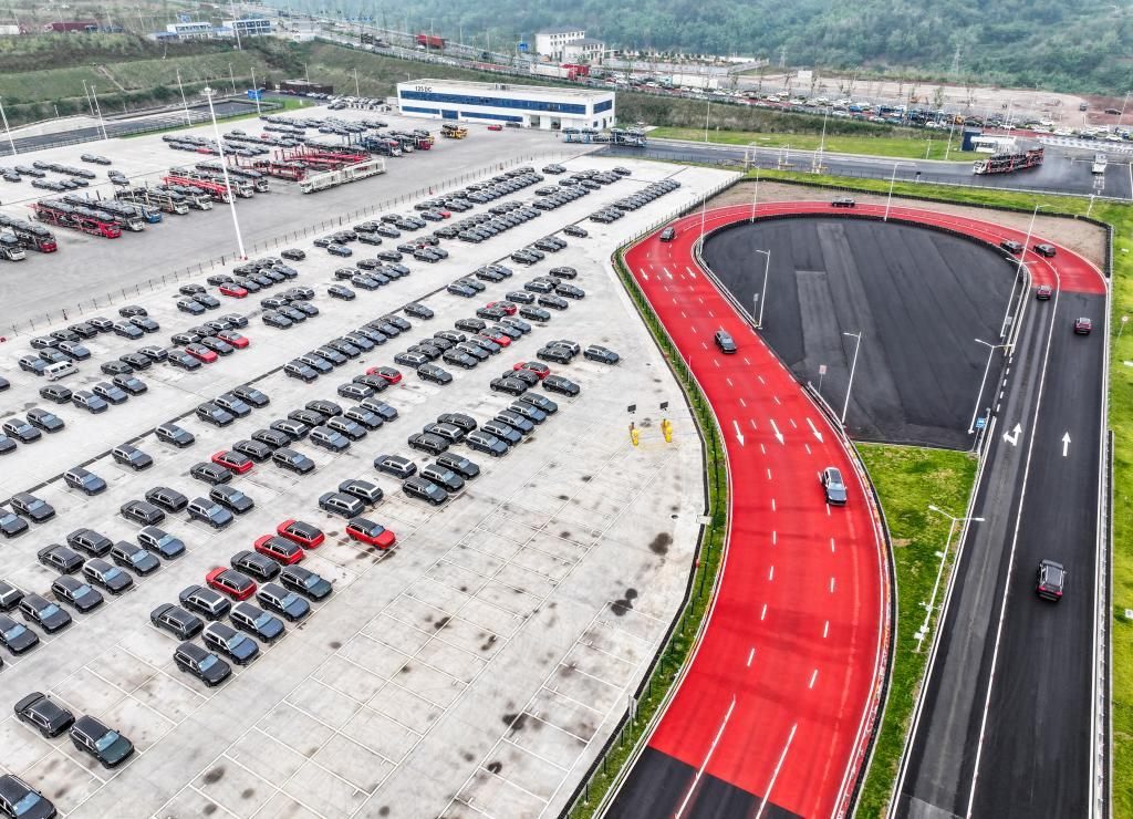 2024年11月6日在位于重慶市兩江新區(qū)的賽力斯超級工廠拍攝的新能源汽車(無人機(jī)照片)。新華社記者 王全超 攝
