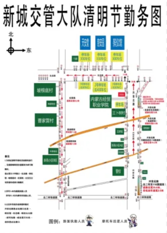 清明節(jié)假期新城區(qū)紅保線將實(shí)行單向通行。4 月 4 日至 4 月 6 日每日 6 點(diǎn)-14 點(diǎn)紅保線將實(shí)行單向通行,祭掃市民可從呼哈線紅保線交匯處經(jīng)過(guò)原呼和浩特市殯儀館、慈安園 、天安堂至坡根底村處向南行駛可返回市區(qū),Y371(省道104至野馬圖路)調(diào)整為單行,只能由西向東行駛。同時(shí)建議市民盡量選擇公交車等綠色出行方式,乘坐公交車36路58路在國(guó)家北方足球訓(xùn)練基地下車即可。