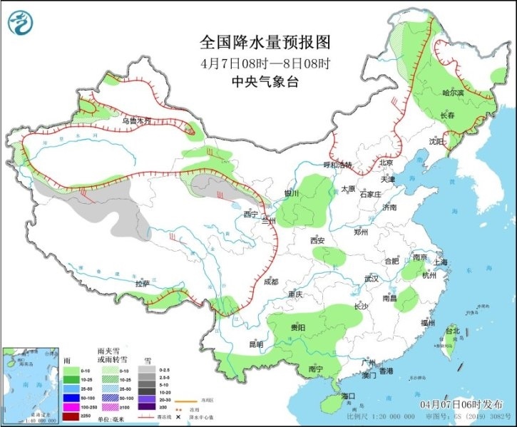 預計今明兩天,全國大部地區(qū)降水仍較弱,西南地區(qū)東部、江南、華南西部和北部、臺灣島等地部分地區(qū)有小到中雨,局地有大雨;今天(7日)新疆南疆西部、青海北部、內(nèi)蒙古東北部等地部分地區(qū)有小到中雪或雨夾雪。另外,8日夜間至9日,貴州東部、江南、華南北部等地部分地區(qū)有中到大雨,局地有暴雨,并伴有強對流天氣。