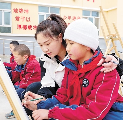 2023年,高潮從山西大同大學(xué)美術(shù)學(xué)院畢業(yè)前,看到了西部計(jì)劃的招募信息?!耙ツ敲催h(yuǎn)的地方當(dāng)老師嗎?”高潮有點(diǎn)猶豫。她小時(shí)候在鄉(xiāng)村小學(xué)讀書(shū),因?yàn)槔蠋熒伲芏嗾n程都開(kāi)展不起來(lái),“想到自己小時(shí)候的經(jīng)歷,我下定了決心?!?/p>