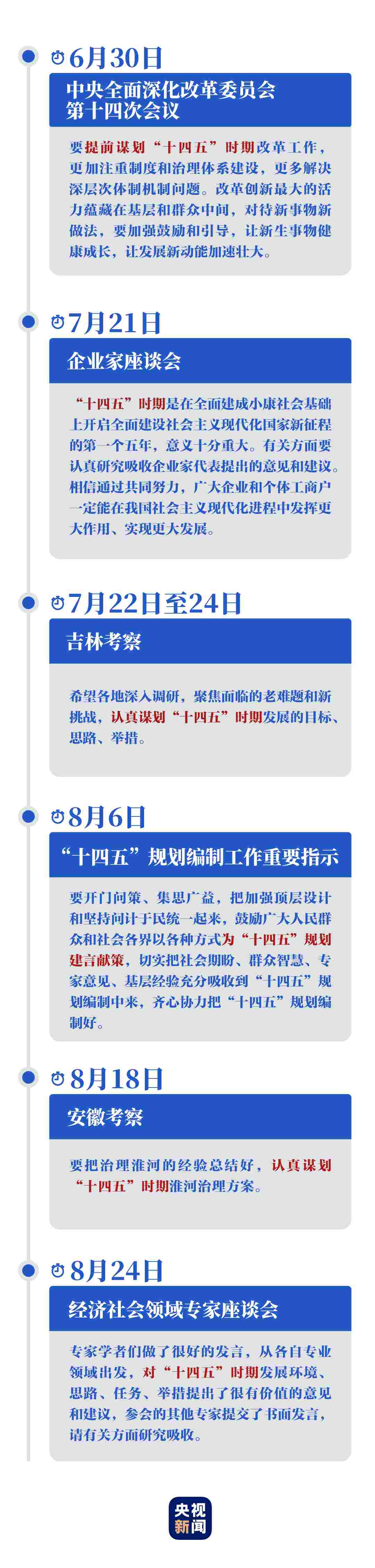 今年以來,習(xí)近平總書記多次主持召開重要會(huì)議、赴地方考察,就“十四五”開門問策,聽取大家對(duì)當(dāng)前經(jīng)濟(jì)形勢(shì)、“十四五”規(guī)劃的意見和建議,強(qiáng)調(diào)要集思廣益、齊心協(xié)力把“十四五”規(guī)劃編制好。