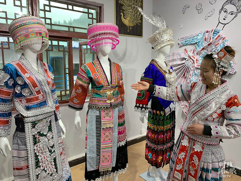 △楊文麗正在介紹“歪梳苗服飾”。(總臺央視記者段德文拍攝)