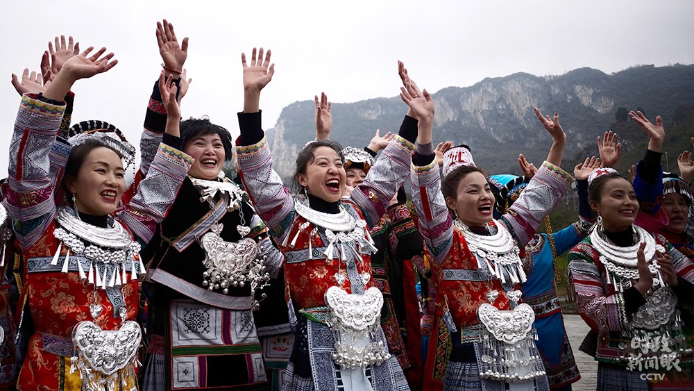 播放視頻畫中畫△視頻丨化屋村村民唱起苗族語歡歌,歌詞大意是“我們都是好朋友,一起跳舞吧”。(總臺央視記者楊立峰拍攝)
