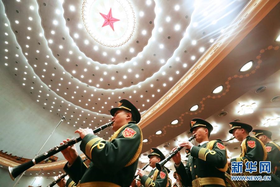 3月5日,第十三屆全國(guó)人民代表大會(huì)第四次會(huì)議在北京人民大會(huì)堂開幕。這是軍樂團(tuán)在演奏。新華社記者 金良快 攝
