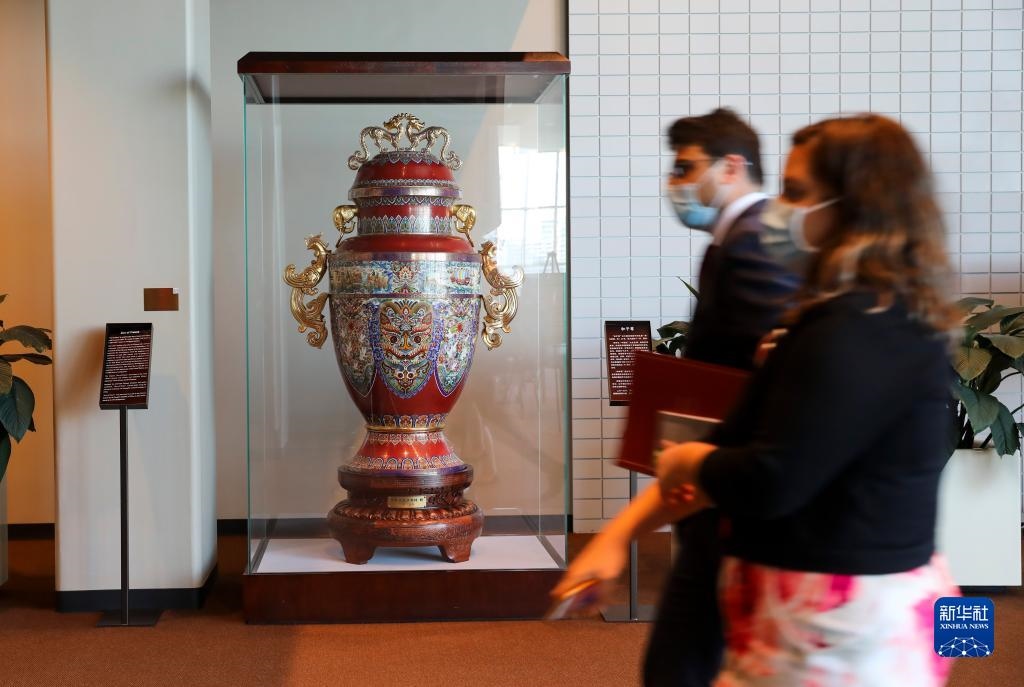 這是2021年10月21日在紐約聯(lián)合國(guó)總部拍攝的和平尊。新華社記者 王迎 攝