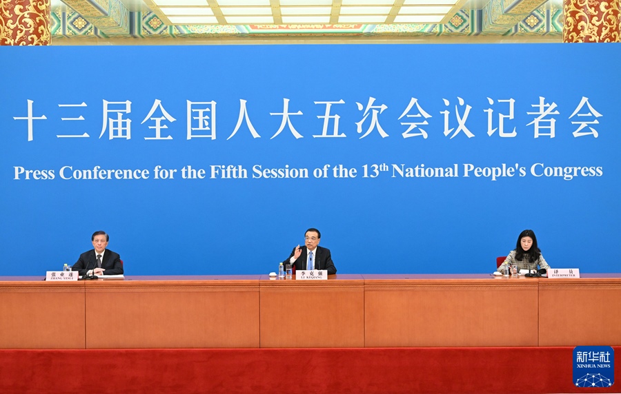 3月11日上午,十三屆全國(guó)人大五次會(huì)議在北京人民大會(huì)堂舉行記者會(huì),國(guó)務(wù)院總理李克強(qiáng)應(yīng)大會(huì)發(fā)言人張業(yè)遂的邀請(qǐng)出席記者會(huì),并回答中外記者提問(wèn)。新華社記者 殷博古 攝